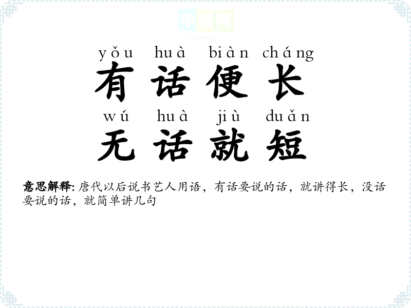 | 一长一短 | 形容说话絮叨,琐谈不休。 |