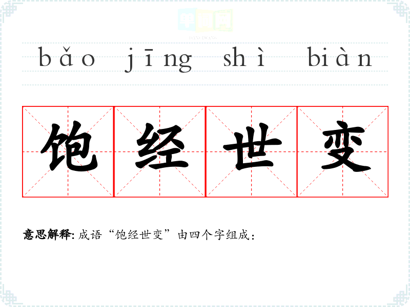 | 饱经世变 | 指经历了许多人世变故。 |