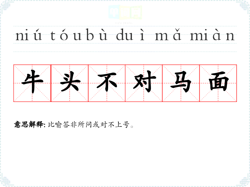 | 牛头不对马嘴 | 比喻答非所问或两下不相合。 |