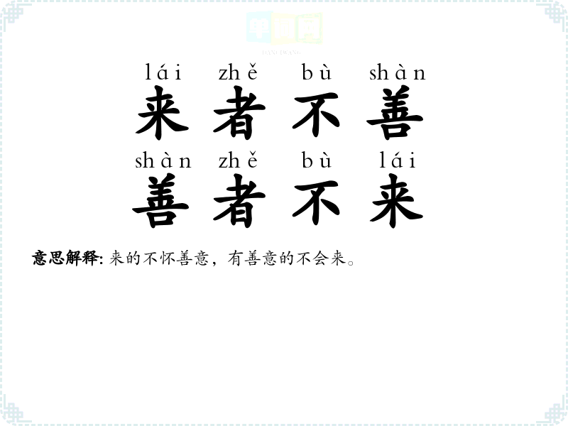 | 不请自来 | 不用邀请自己前来。多指不速之客。 |