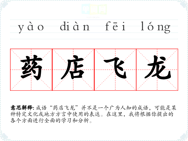 成语“药店飞龙”并不是一个广为人知的成语,可能是某种特定文化或地方方言中使用的表达。在这里,我将根据你提出的各个方面进行全面的学*和分析。