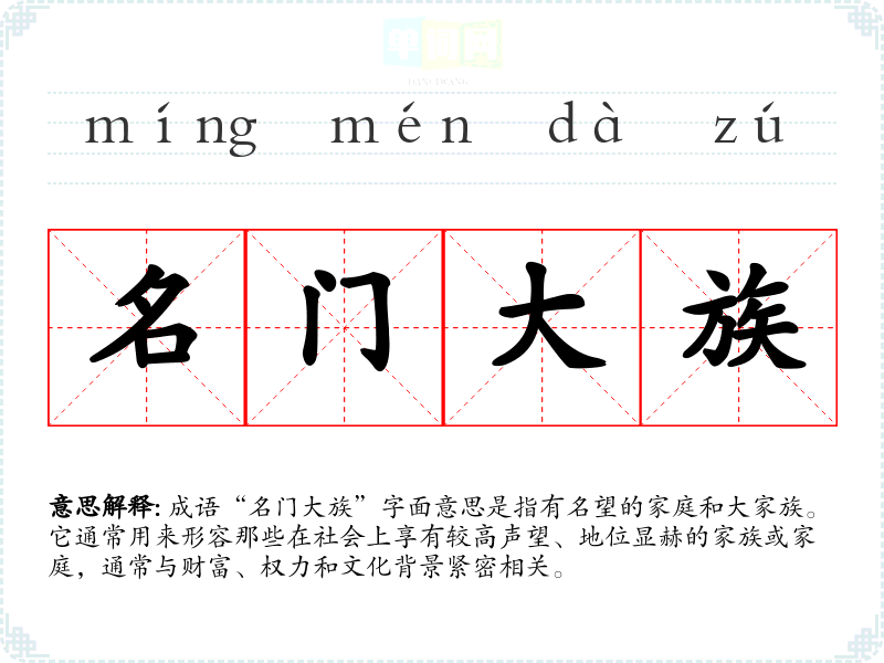 - 演讲:在正式场合,比如关于社会阶层或历史的演讲中,可以提及“名门大族”作为社会结构的一部分。