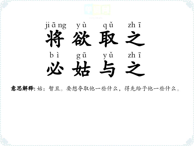 | 一朝权入手,看取令行时 | 一朝:一旦。一旦掌了权,就发号施令,指手画脚,作威作福 |