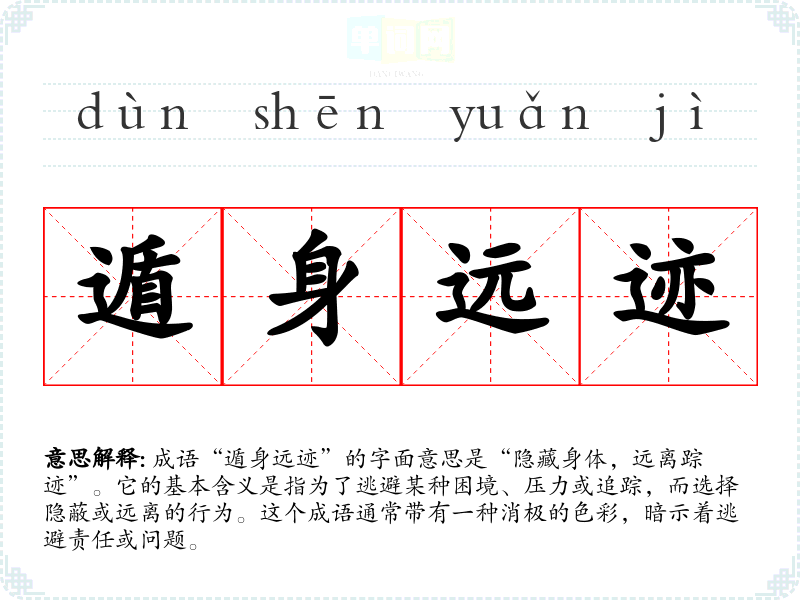 深藏远遁 藏身于深密之处,远远地离开人群。指逃避尘世而隐居。