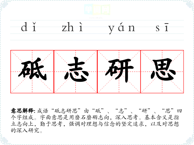 | 砥志研思 | 专心致志,深思钻研。 |
