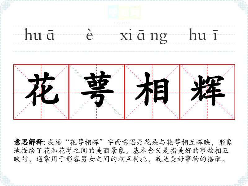 成语“花萼相辉”字面意思是花朵与花萼相互辉映,形象地描绘了花和花萼之间的美丽景象。基本含义是指美好的事物相互映衬,通常用于形容男女之间的相互衬托,或是美好事物的搭配。
