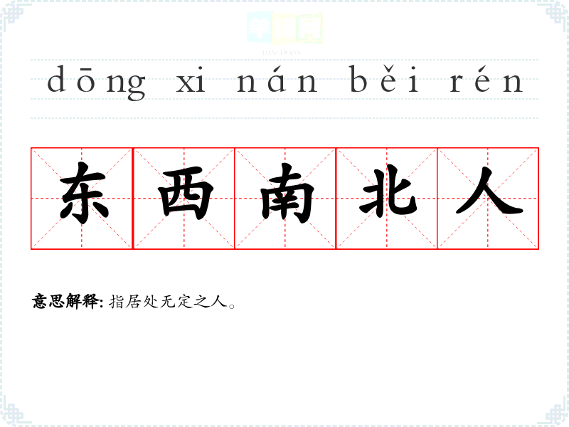 | 东西南北人 | 指居处无定之人。 |