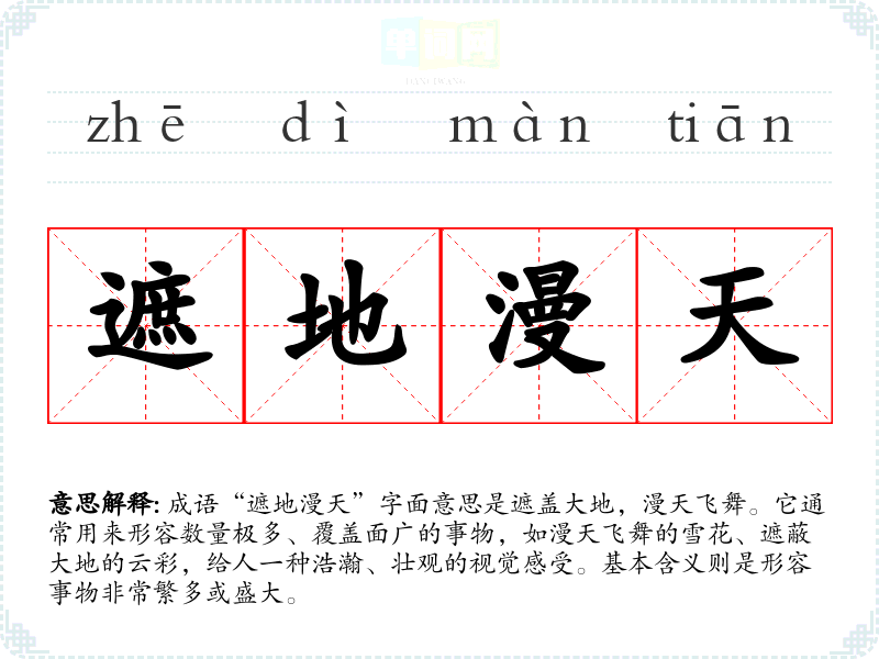 - “铺天盖地”:形容势力、声势等覆盖面极广,与“遮地漫天”有相似的表达效果。