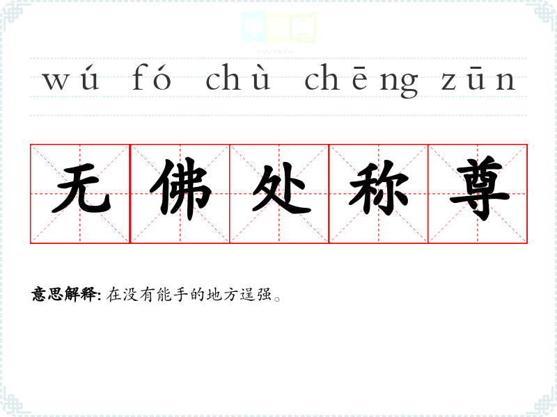 用法"作谓语、宾语;指在没有能手的地方逞强"