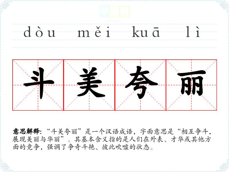 | 斗美夸丽 | 指比赛美丽以争胜。 |