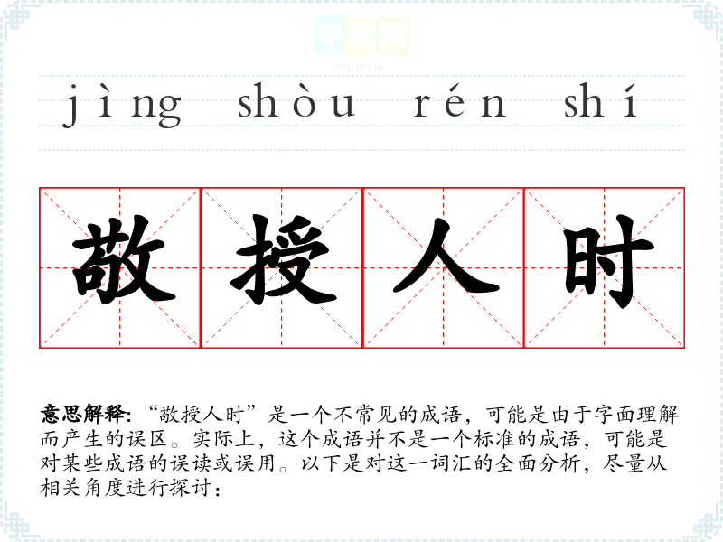 “敬授人时”是一个不常见的成语,可能是由于字面理解而产生的误区。实际上,这个成语并不是一个标准的成语,可能是对某些成语的误读或误用。以下是对这一词汇的全面分析,尽量从相关角度进行探讨:
