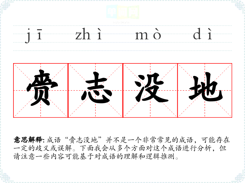 成语“赍志没地”并不是一个非常常见的成语,可能存在一定的歧义或误解。下面我会从多个方面对这个成语进行分析,但请注意一些内容可能基于对成语的理解和逻辑推测。