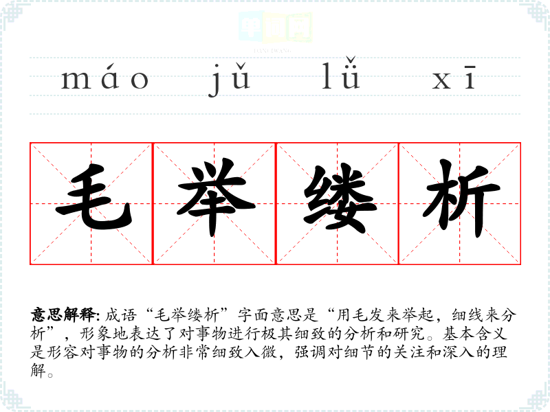 分毫析厘 毫、厘:都是细小的单位名称;析:剖析。分析一毫一厘。形容分析细微。