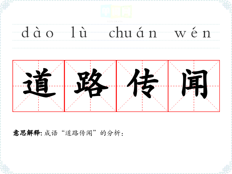 “道路传闻”并没有明确的历史典故或文学出处,但其构成反映了古代社会中信息传播的特点。在古代,信息主要依赖于口耳相传,路上的闲谈和传闻常常成为人们获取消息的重要方式,然而这种方式也容易导致信息的失真和误解。