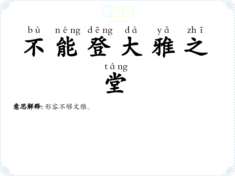 | 不能登大雅之堂 | 形容不够文雅。 |