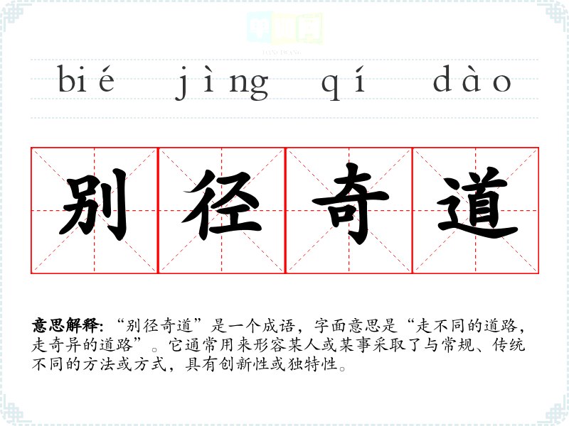 “别径奇道”是一个成语,字面意思是“走不同的道路,走奇异的道路”。它通常用来形容某人或某事采取了与常规、传统不同的方法或方式,具有创新性或独特性。