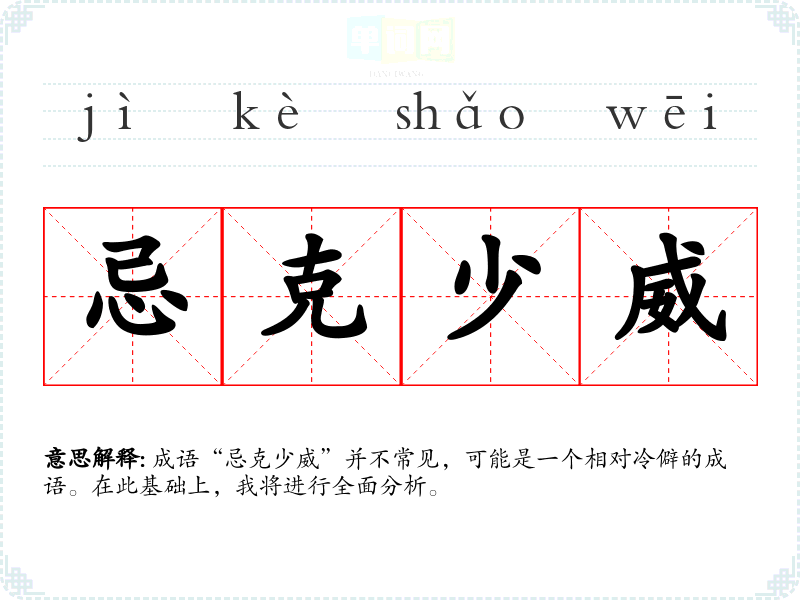 成语“忌克少威”并不常见,可能是一个相对冷僻的成语。在此基础上,我将进行全面分析。