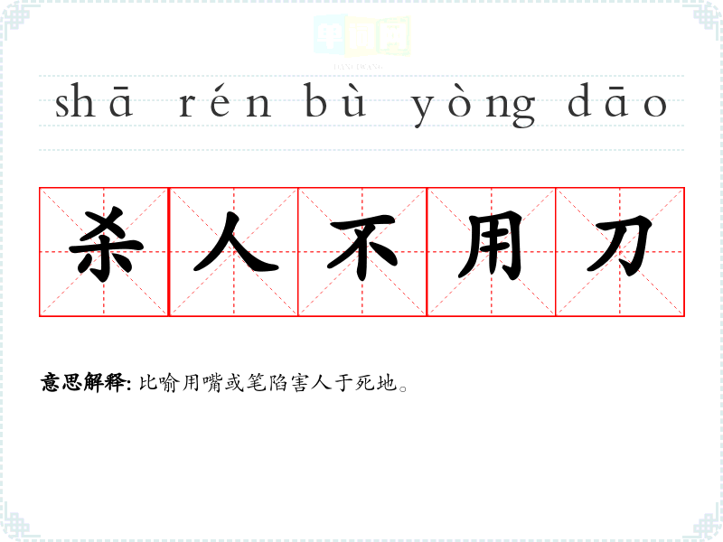 | 杀人不用刀 | 比喻用嘴或笔陷害人于死地。 |