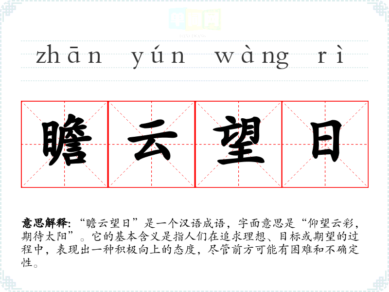 - 面对困难,我们要“瞻云望日”,相信总会迎来光明的未来。