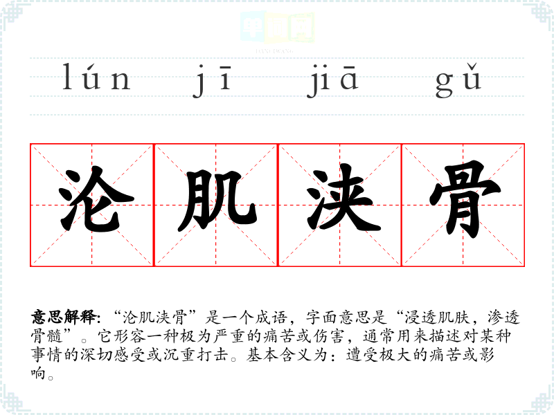 - 反义成语:乐在其中、心旷神怡。它们传达了快乐与轻松的感觉,显然与“沦肌浃骨”的含义相对立。
