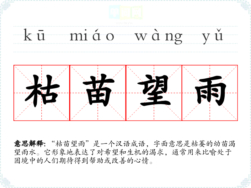 - 演讲:在鼓励他人时,演讲者可能会提到“枯苗望雨”来激发听众的斗志和信心。