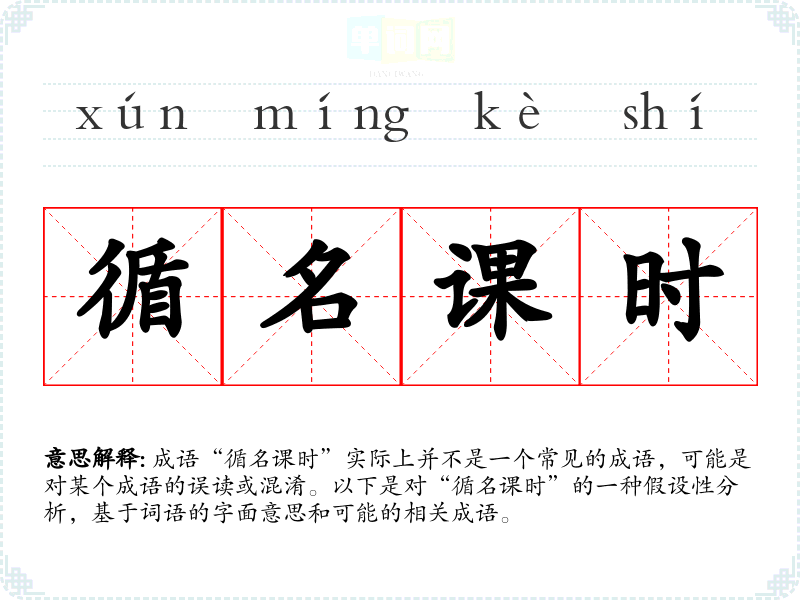 成语“循名课时”实际上并不是一个常见的成语,可能是对某个成语的误读或混淆。以下是对“循名课时”的一种假设性分析,基于词语的字面意思和可能的相关成语。