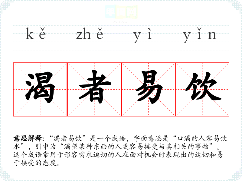 在不同的语境中,“渴者易饮”可以用来形容很多情况。例如: