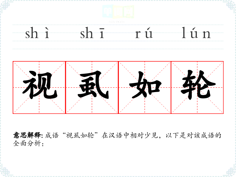 成语“视虱如轮”在汉语中相对少见,以下是对该成语的全面分析: