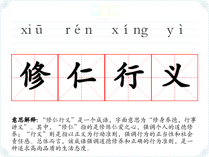- 演讲:在演讲中提到“修仁行义”可以强调个人责任感与社会道德的重要性。