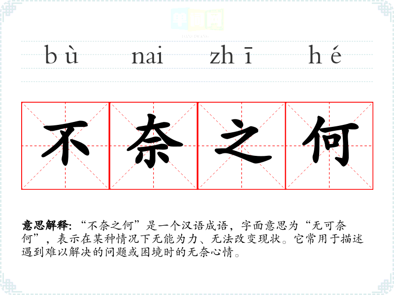 | 不奈之何 | 指无可奈何,无法可想。 |