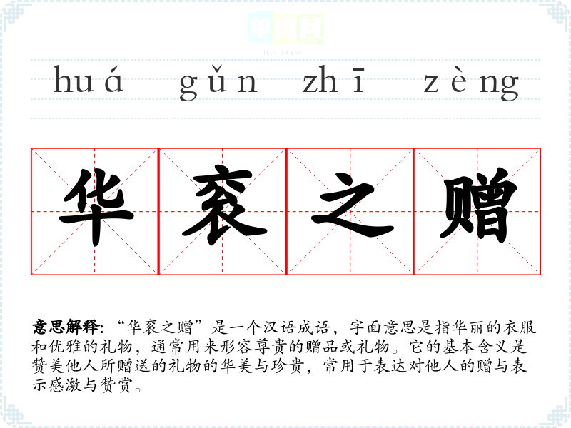 在古代**,礼物不仅仅是物质的象征,更是人际关系、地位和文化的体现。华衮之赠体现了对礼仪的重视,以及人与人之间通过赠与建立关系的方式。在现代社会,该成语仍然适用,尤其在强调人际交往与礼物文化的场合。