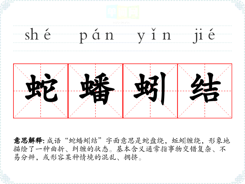 “蛇蟠蚓结”让我联想到生活中的无奈和混乱,尤其是在面对复杂人际关系或繁琐的工作时,常常会感到心力交瘁。这种成语的使用,能够传达出一种对复杂局面的无奈感,同时也引导人们思考如何理清思路。
