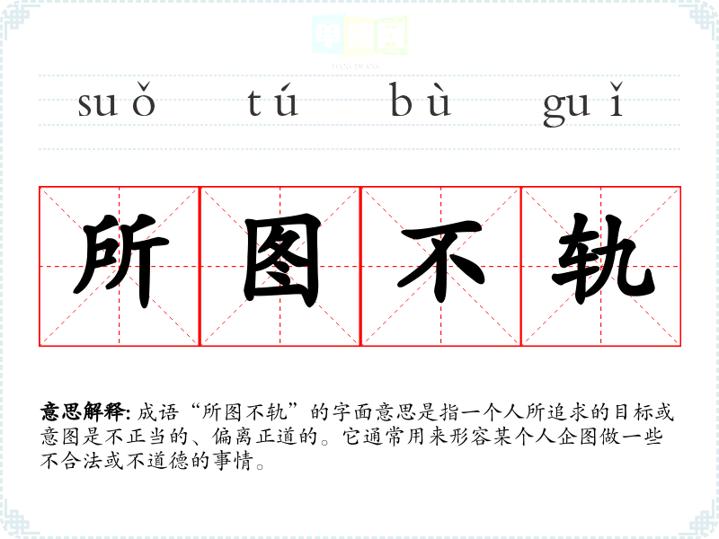 | 所图不轨 | 指图谋做不合法或不正当的坏事。 |