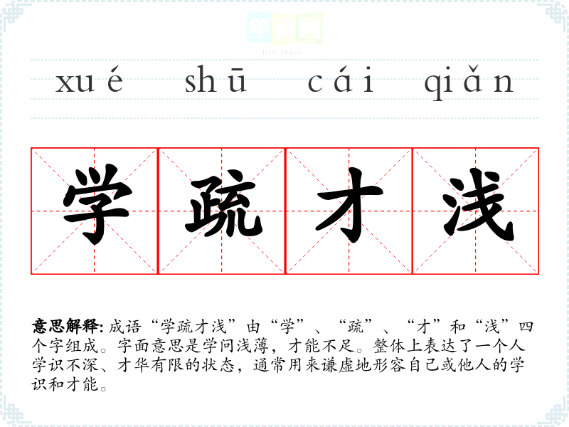 - 日常对话:在朋友聚会或工作讨论中,某人可能会用“学疏才浅”来谦虚地表达自己对某个话题的了解不够深入。