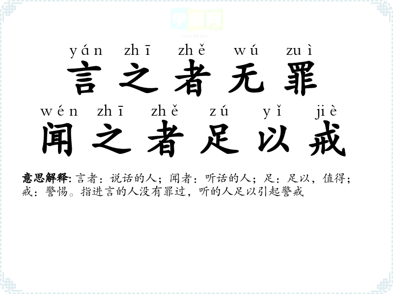 | 之乎者也 | 这四个字都是文言虚词,讽刺人说话喜欢咬文嚼字。也形容半文不白的话或文章。 |