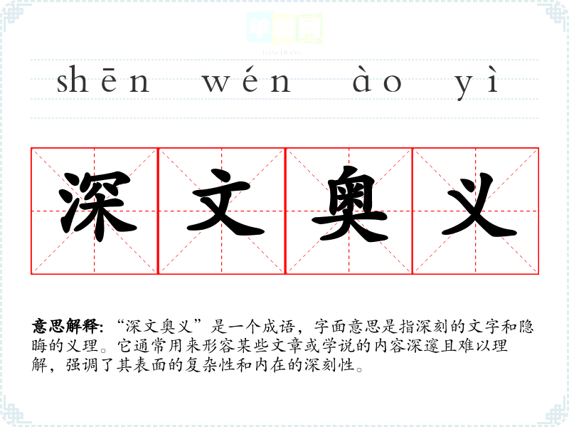 | 深文奥义 | 指文词、言语艰深,含义晦涩。 |