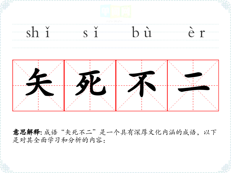 成语“矢死不二”是一个具有深厚文化内涵的成语,以下是对其全面学*和分析的内容: