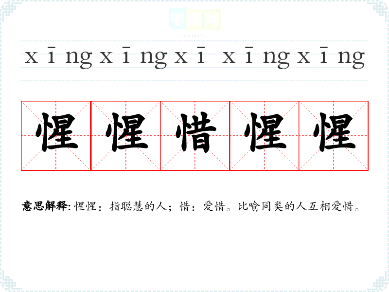 惺惺:指聪慧的人;惜:爱惜。比喻同类的人互相爱惜。