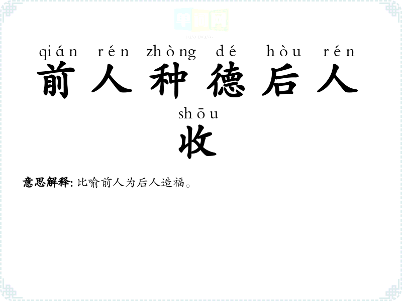 | 前人种德后人收 | 比喻前人为后人造福。 |