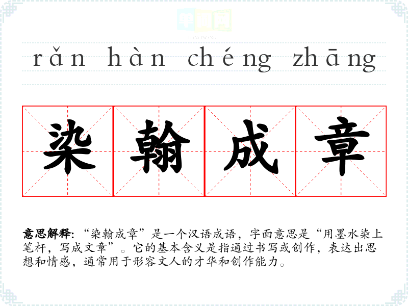 | 染翰成章 | 指提笔成文。 |