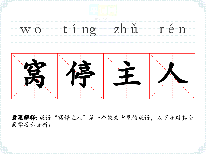 成语“窝停主人”是一个较为少见的成语,以下是对其全面学*和分析: