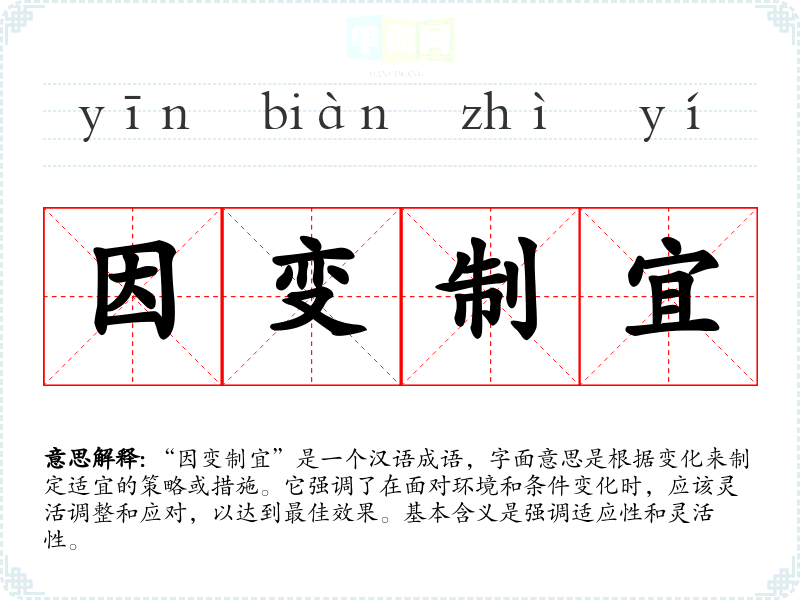 同义成语强调适应能力,而反义成语则强调缺乏变化和灵活性,这与“因变制宜”的核心思想形成鲜明对比。
