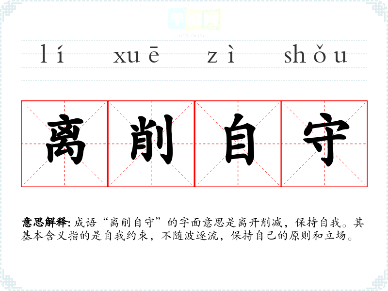 成语“离削自守”的字面意思是离开削减,保持自我。其基本含义指的是自我约束,不随波逐流,保持自己的原则和立场。