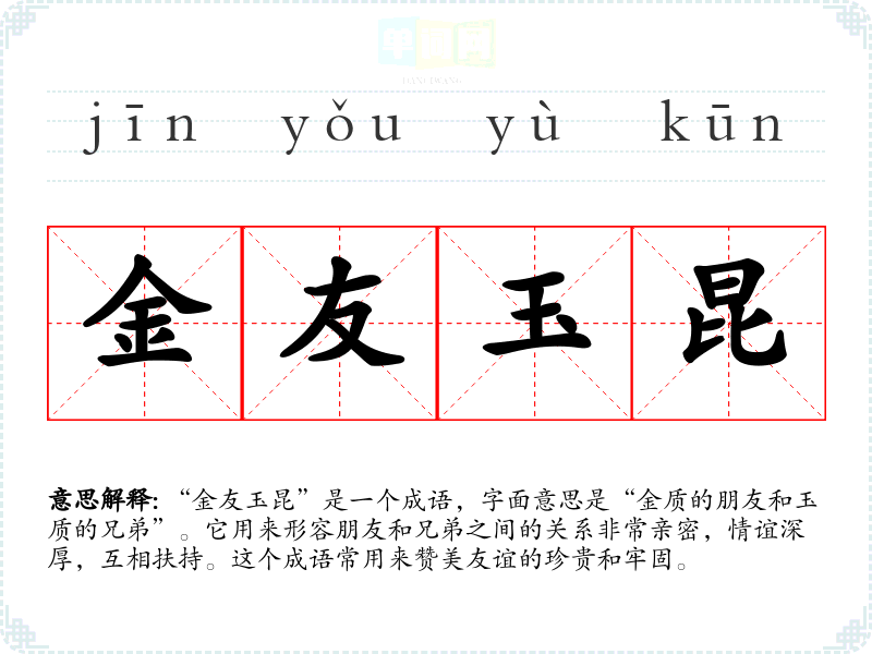 玉友金昆 友、昆:指兄弟。对他人兄弟的美称。