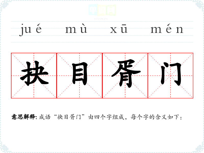 成语“抉目胥门”由四个字组成,每个字的含义如下: