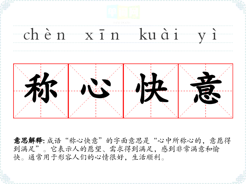 通过对“称心快意”的学,我认识到这个成语不仅仅是对情感的简单描述,它还蕴含着对美好生活的向往。在语言学中,运用这样的成语能够丰富表达,更生动地传达情感,提醒我在生活中保持积极的态度,追求内心的满足。