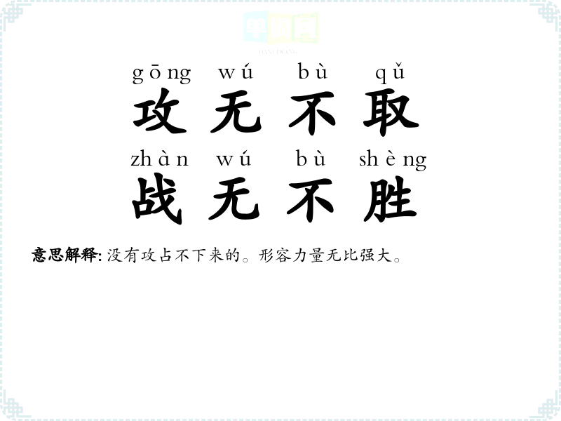 | 九战九胜 | 形容每战必胜。 |