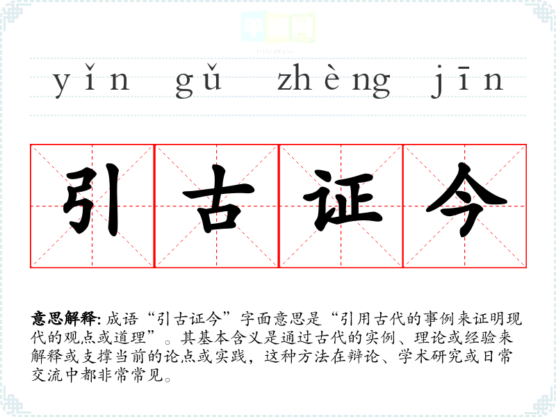| 引古证今 | 用古代的经验教训,证明现实中的事情。 |