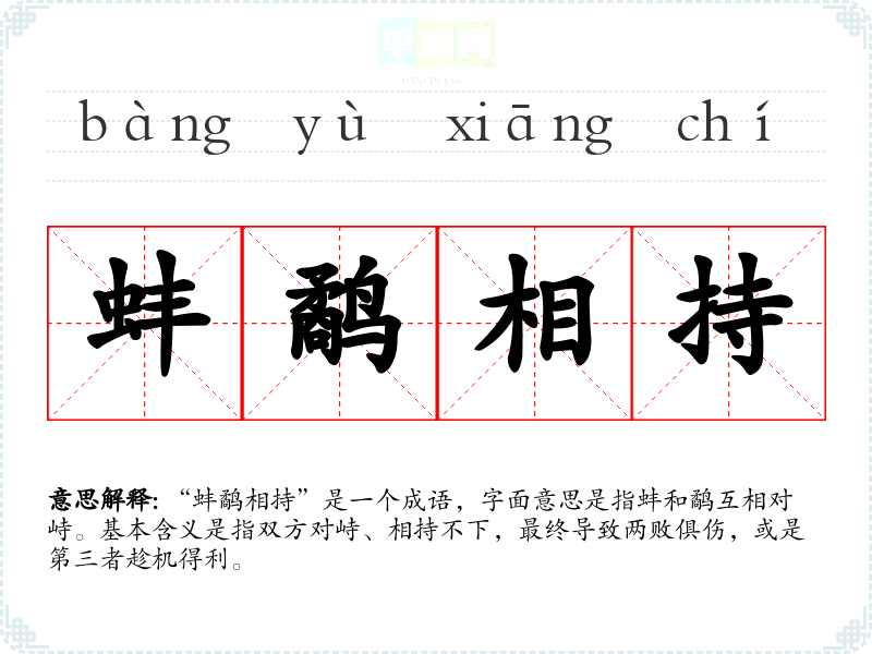 “蚌鹬相持”在**传统文化中,常用来警示人们在争斗中要理智,避免因小失大。在现代社会中,尤其是在竞争激烈的商业环境和国际关系中,这一成语依然具有重要的适用性,提醒人们在冲突中考虑长远利益。