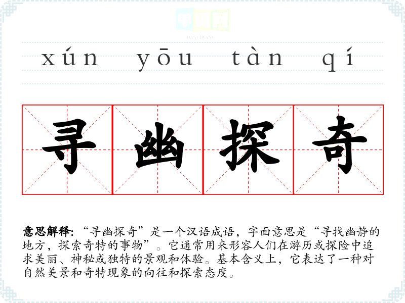 - 日常对话:朋友间分享旅行经历时,可能会提到“寻幽探奇”的乐趣。